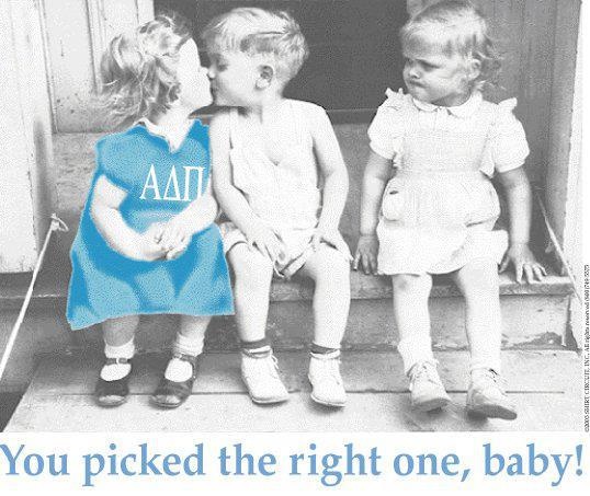 1. We all know that I love my sorority, Alpha Delta Pi (I mean, I mention it all the time on here, such as in this post or this post). Alpha Delta Pi pins are my favorite to pin! While going through pins for my sorority this week, I came across this take on a classic photo – with the girl being kissed being in Alpha Delta Pi letters. I find this pin to be so cute!! I mean, everyone loves an Alpha Delta Pi girl and this pin just shows that picking an Alpha Delta Pi girl is always the right choice.