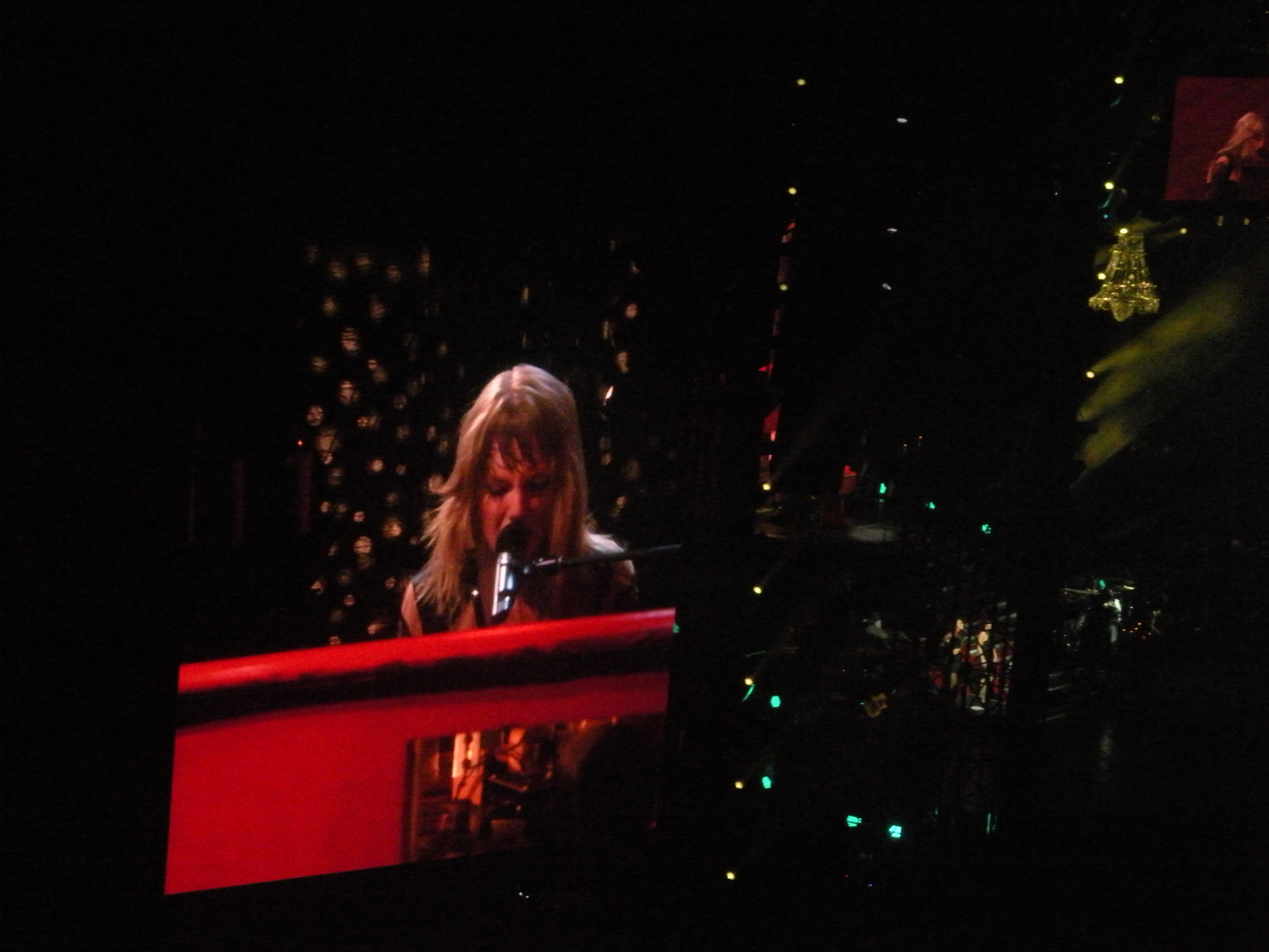 Taylor Swift then sat down at her piano to sing “Begin Again” and “Treacherous.” Another aspect of Swift performances that make them so great is the emotion that Swift puts in. She puts her all into each song – this is especially noticeable when Swift sings as she plays piano. Each facial expression is magnified so closely on the video screens so every audience member can see Swift’s expressions.