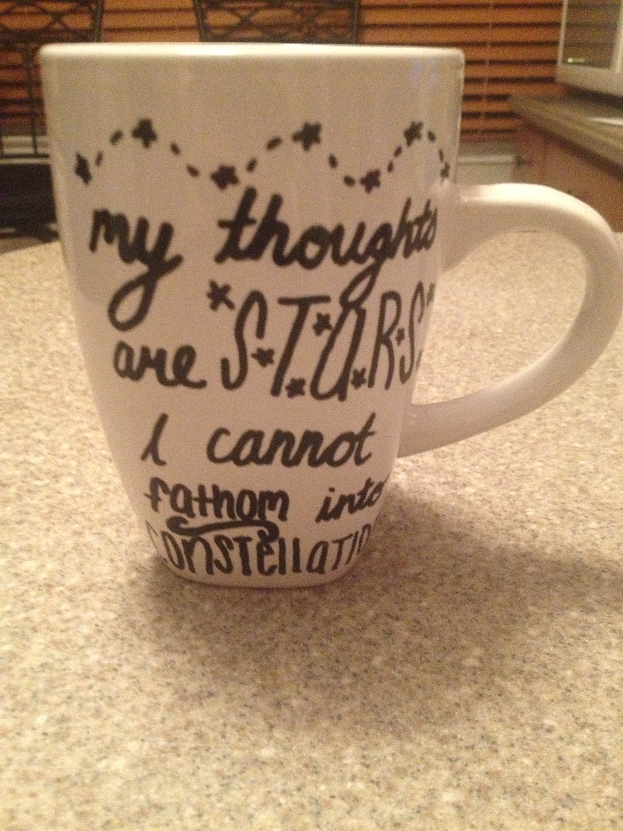 The shop offers hand drawn mugs, ceramics, accessories, and more! Most of the products display quotes from your favorite TV shows and books. Some are for the holidays. Popular movies and books on the site include “Harry Potter,” Doctor Who,” and John Green’s novel (and soon to be movie – yay!) “The Fault in Our Stars.” I received a mug featuring a popular “The Fault in Our Stars” quote saying, “My thoughts are stars that I cannot fathom into constellations.”