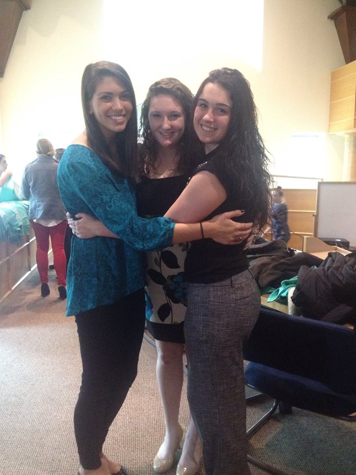 Meet my sisters Crystal, Morgan, and Erin (the one we are picking up)! This was taken at our spring photo shoot of my freshman year.